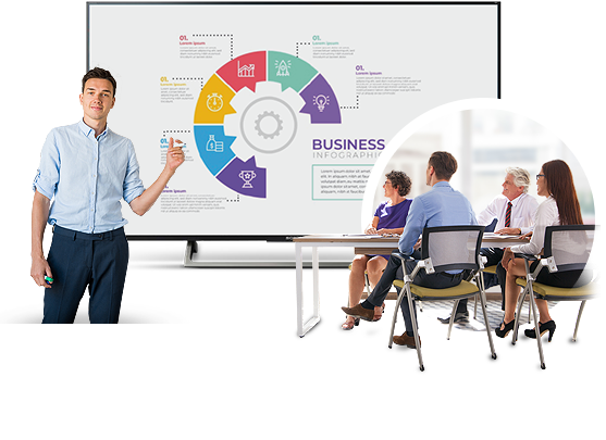 Aldo Presenter can be extended to seamlessly conduct online meetings with Aldo Meetings and webinars with Aldo Webinars. It is also available to use as an integral part of Aldo Signage, where a display can be used to show messages, schedules, and other content, when a meeting is not being conducted.